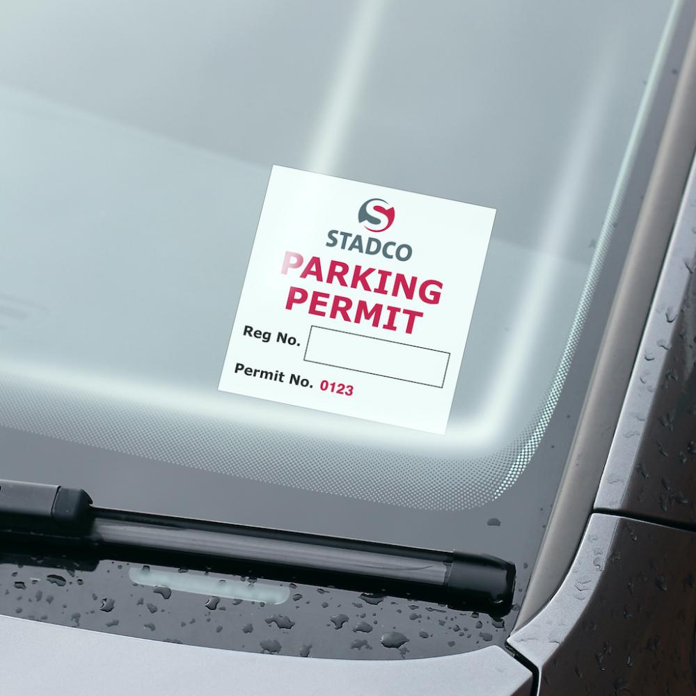 Our parking permit window stickers are displayed in car front windscreens, applied to the inside of the windscreen and are viewed from the outside, through the glass. Each permit is individually numbered and has a space to write a vehicle registration number.